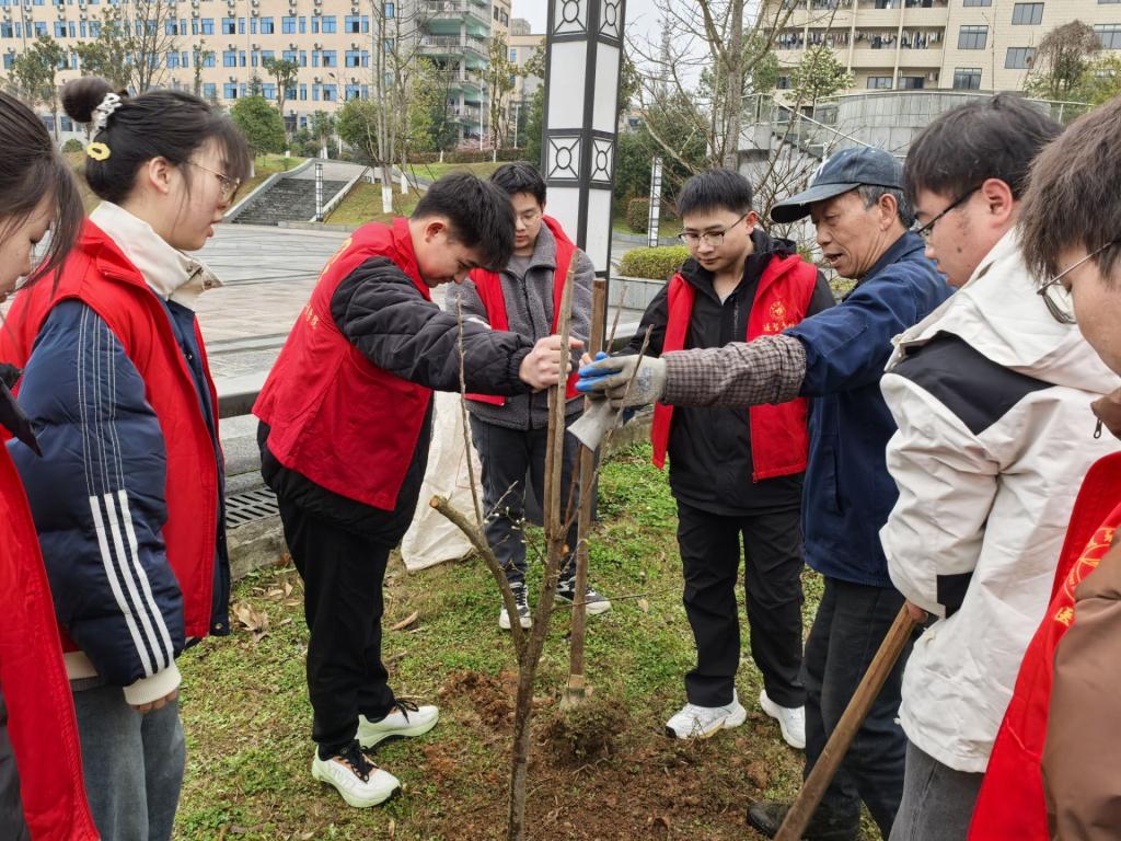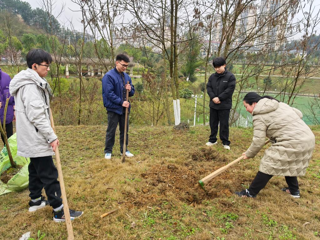 3月11日上午9时,学院党委副书记刘畅、学生第一党支部书记熊宝锋、团委书记兼学生第二党支部书记杨夏、辅导员冉姣以及学院学生代表来到学校东湖开展植树活动。在园艺师傅的指导下,大家有序领取树苗以及植树工具,前往选定的植树点,师生们齐心协力,挥锹铲土、扶苗填坑、提水浇灌,认真细致的做好每一个步骤,活动结束后老师、同学们与亲手栽种的树苗合影。3月15日下午16时,学院组织团员青年参与东湖及教学楼公共区域清扫行动。同学们手持垃圾袋和长柄夹,仔细捡拾东湖岸边的烟头、纸屑、塑料瓶等垃圾,不放过任何一个卫生死角;有的同学将教学楼公共区域的杂物一一清理干净,同学们充分发挥不怕脏、不怕累的精神,用实际行动践行着“雷锋精神”。