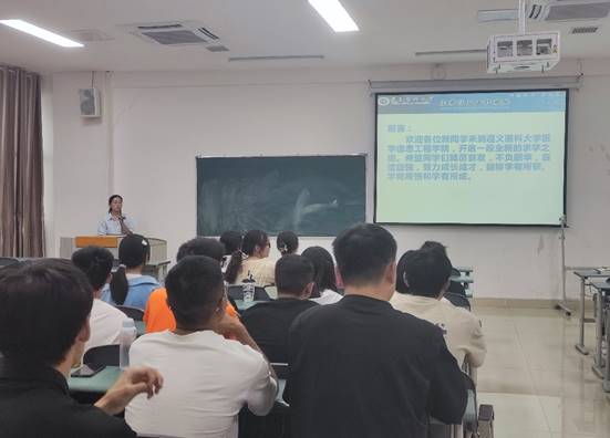 会上,学院党委副书记刘畅向新生致欢迎辞。她表示,新生们即将开始一段崭新而充满挑战的大学生活,希望同学们能够珍惜时光,勤奋学习,同时也要关注身心健康,积极参与各种校园活动,全面提升自我。接着,冉姣老师为新生们进行了校规校纪教育。她详细介绍了学校的各项规章制度,包括学籍管理、考勤制度、考试纪律等,并特别强调了遵守校规校纪的重要性。她希望新生们能够自觉遵守学校规定,养成良好的行为习惯。熊宝锋老师、学生金祥宇、唐仁亚为新生分别开展了意识形态、安全稳定、交通安全、防诈反诈教育。他们从国家安全、网络安全、交通安全、人身安全及财产安全等方面出发,诠释了安全的定义、安全的重要性,并就如何保障安全等方面进行了深入讲解。熊老师还就学生正确理性参与网络舆情,营造风清气正的网络环境进行了进一步的阐述。