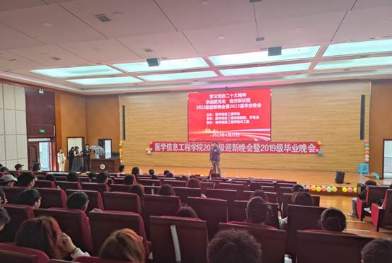 4月22日,bw必威西汉姆联在学校人文楼道德讲堂开展“学习党的二十大精神 永远跟党走 奋进新征程”2022级迎新晚会暨2023届毕业晚会。学院党委书记梁斯上台致辞,给予毕业生诚挚祝福和期望,希望同学们未来仍能心系母校、不忘初心、感师恩、立大志,努力去实现自我最大人生价值。
