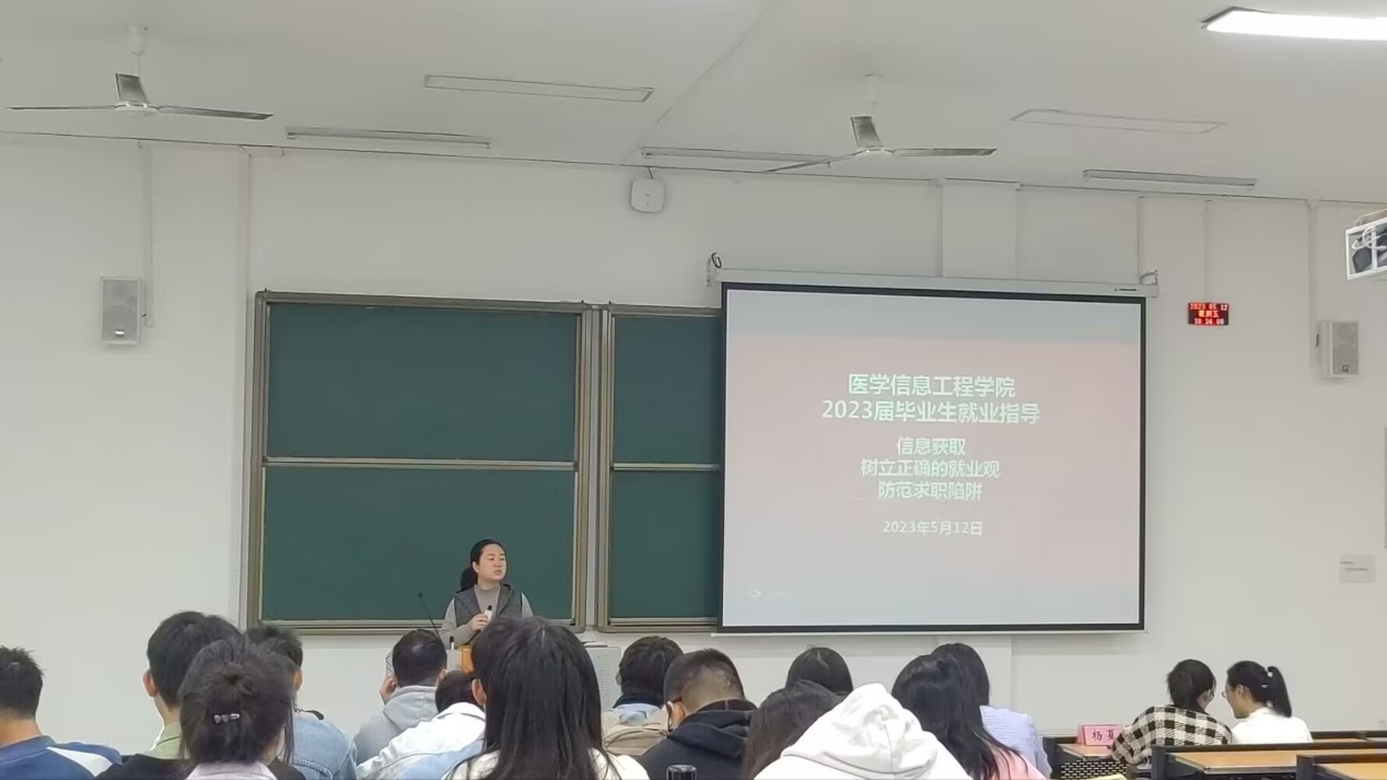 5月12日,学院党委副书记刘畅以“树立正确的就业观、防范求职陷阱”为主题,为2023届毕业生进行了就业指导专题讲座,一是为同学们介绍当前就业形势和国家政策,引导同学们要树立正确的就业观念;二是要求同学们要精准掌握就业信息,可多利用人才交流会、企业招聘会和求职网站等正规渠道去获取有效的求职信息;三是谈到在就业过程中一定要注意防范求职陷阱,对一些传销、虚假职位、侵权等问题多注意甄别,要关注合同内容和企业执照等信息;四是对同学们加强求职心理疏导,调整了同学们的就业心态。