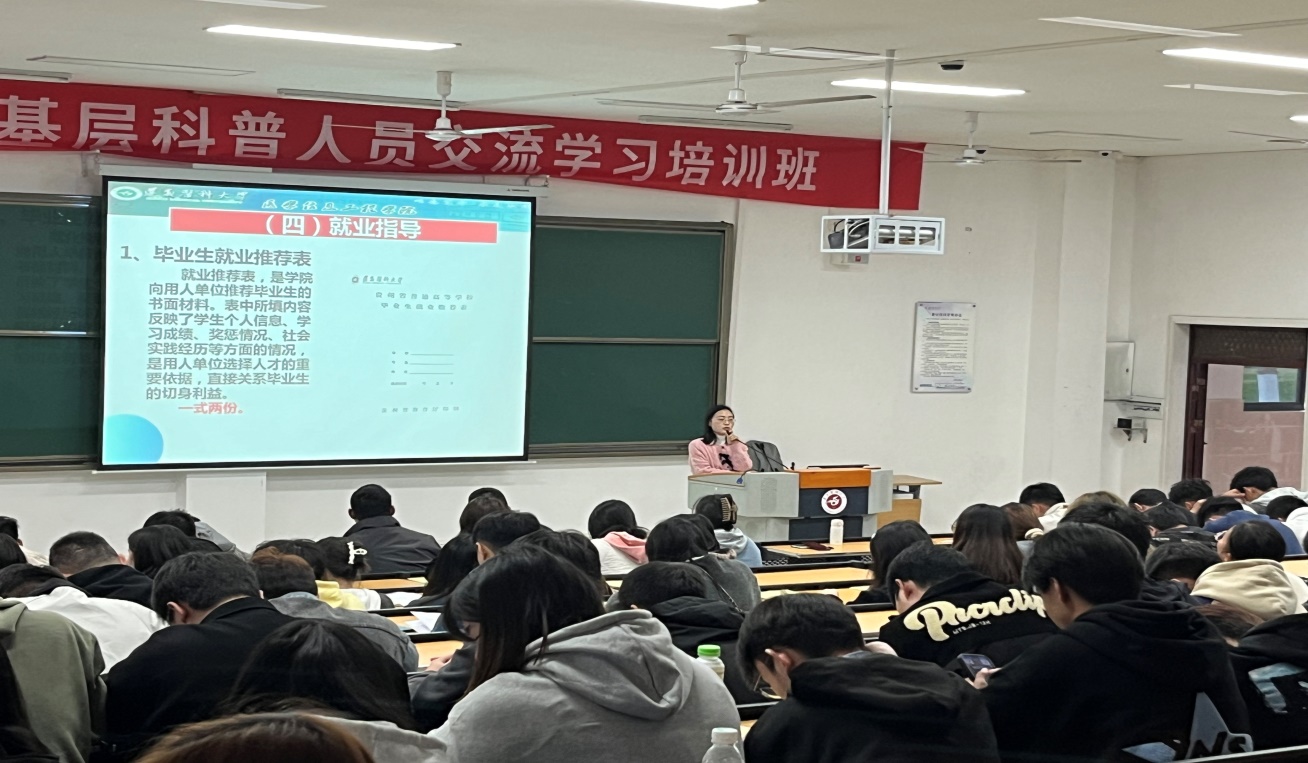 在11月5日,首先,辅导员冉姣老师以“实习返校点名、安全教育、征兵入伍政策宣传”为主题为同学们进行了详细讲述,旨在帮助同学们提高安全意识,理清思路,树立积极的求职心态。接着,刘畅副书记对学生进行就业教育培训,她向毕业生提出三点建议:一是同学们要熟悉就业政策,转变观念,要把找工作和毕业论文撰写双手抓,不要一味坐考,找工作和备考公务员等同时进行,支持同学们自主创业,要主动作为。二是简历制作、面试技巧、职业形象塑造和职业习惯养成等,要有针对性的准备。三是就业要积极,签约要谨慎。同学们在积极就业,在签定就业协议、合同的中应该要注意的事项,从而帮助毕业生正确择业指明了方向。