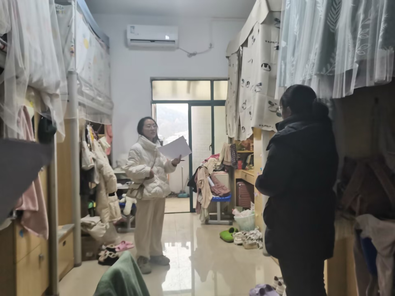 12月27日晚6时,刘畅副书记与辅导员冉姣老师、李娇娇老师老师以及学生会纪检部成员分组走访了2021级全部学生宿舍,与同学们面对面的交流,了解同学生活、学习、就业情况,并对同学的论文准备、就业目标、实际需求一一进行了询问,对适龄男青年逐一进行了应征入伍的现场动员交流。