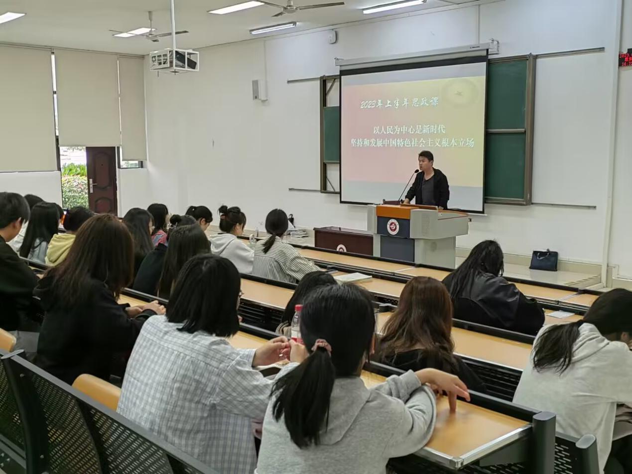 梁书记以《以人民为中心是新时代坚持和发展中国特色社会主义根本立场》为题,从“人民对美好生活的向往就是我们的奋斗目标”“依靠人民创造历史伟业”“朝着实现全体人民共同富裕不断迈进”和“把党的群众路线贯彻到治国理政全部活动中”四个方面展开,阐释了马克思主义理论的核心价值-人民。马克思主义理论是人民的理论,第一次创立了人民实现自身解放的思想体系。今天,我们要深入学习贯彻习近平新时代中国特色社会主义思想和党的二十大精神,不断践行“人民立场”,用马克思主义中国化的最新成果,指引人民改造主客观世界。将发展成果更好地惠及全体人民。梁斯同志指出,人民是决定党和国家前途命运的根本力量,带领人民创造美好生活、实现共同富裕,是我们党矢志不渝的奋斗目标,逐步实现全体人民共同富裕是新时代中国特色社会主义的鲜明特征,并从经济、政治、文化、社会和生态文明建设五个方面具体介绍了党如何把群众路线贯彻到治国理政全部活动中。最后,梁书记对在场同学提出要求,希望同学们处理好“小我”与“大我”的关系,个体与人民的关系,努力学习专业知识,投身祖国伟大事业,无愧时代,不负人民。