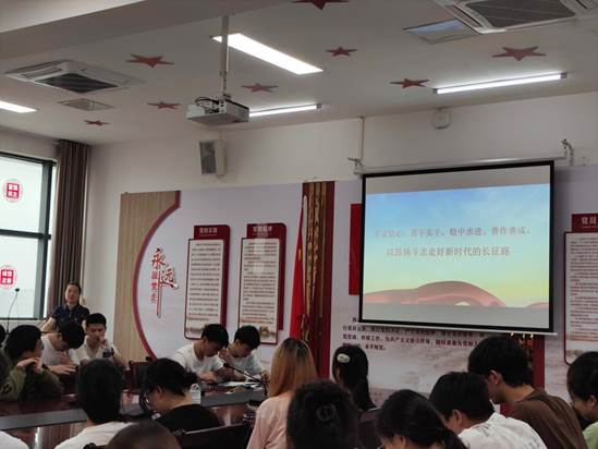 刘畅老师带领同学们全面回顾习近平总书记历次考察贵州的详细情况,深刻阐述了习近平总书记考察贵州的政治意义、实践意义和深远历史意义,并结合习近平总书记在贵州考察时的重要讲话精神和对贵州人民的深切关怀、对贵州发展的殷切期望,同时,紧密结合贵州省实际,用生动鲜活的案例,围绕高质量发展、深化改革开放、乡村振兴、生态环境保护、民族文化传承等多个方面进行了深入、系统的阐释和解读,深入浅出地为同学们讲解了总书记重要讲话的核心要义、精神实质和丰富内涵。最后她结合近期访企拓岗的经历勉励同学们,要努力学好专业知识,找准目标,坚定信心,善于学习和思考,以昂扬斗志走好新时代的长征路,展现青年学子的风采。