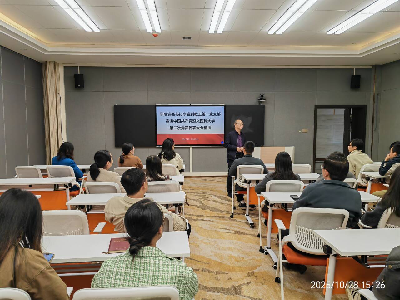 活动开始,由bw必威西汉姆联党委书记李岩同志向教工第一党支部全体党员专题宣讲中国共产党必威西汉姆联第二次党员代表大会精神。宣讲中,李岩同志围绕大会召开的重要背景、核心主题和主要成果展开深入解读,重点传达了学校过去五年在人才培养、学科建设、科研创新等方面的显著成就,详细阐释了未来五年的战略格局和总体思路。他强调,支部党员要深刻领会大会内涵,将思想和行动统一到学校高质量发展目标上来,立足教育教学和科研岗位,在医学信息领域持续深耕,为学校建设特色鲜明、国内一流的高水平医科大学贡献支部力量。