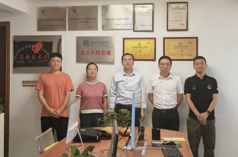 上午,一行人来到贵州忠义柒彩科技开发有限公司。该公司在软件研发、AI解决方案等方面具有丰富的经验和技术实力。公司湛佳军总经理对学院一行的到来表示欢迎,并详细介绍了公司的发展历程、业务范围、企业文化以及人才需求情况。在交流过程中,王晓华院长介绍了学院的专业设置、人才培养模式、教学科研成果以及毕业生就业情况。双方围绕产学研合作、实习基地建设、人才联合培养等方面进行了深入探讨,并达成了初步合作意向。
