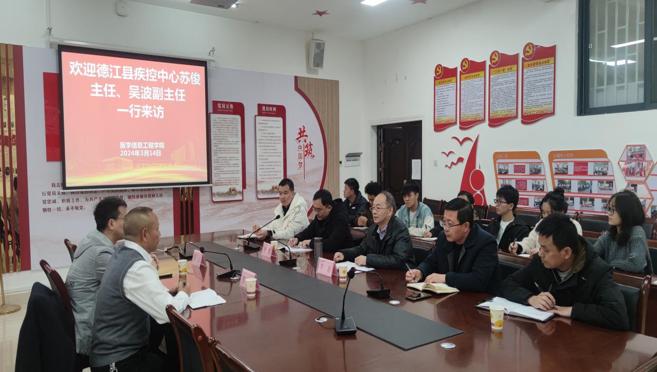 李岩书记首先对苏俊主任一行的到来表示热烈欢迎。随后他详细介绍了我院专业学生的创新能力,表示学院科技人员愿意在科学研究和信息化建设方面进行深度合作,并推荐具有医学背景的计算机专业学生前往德江县疾控中心就业和交流,以期实现资源共享和优势互补。