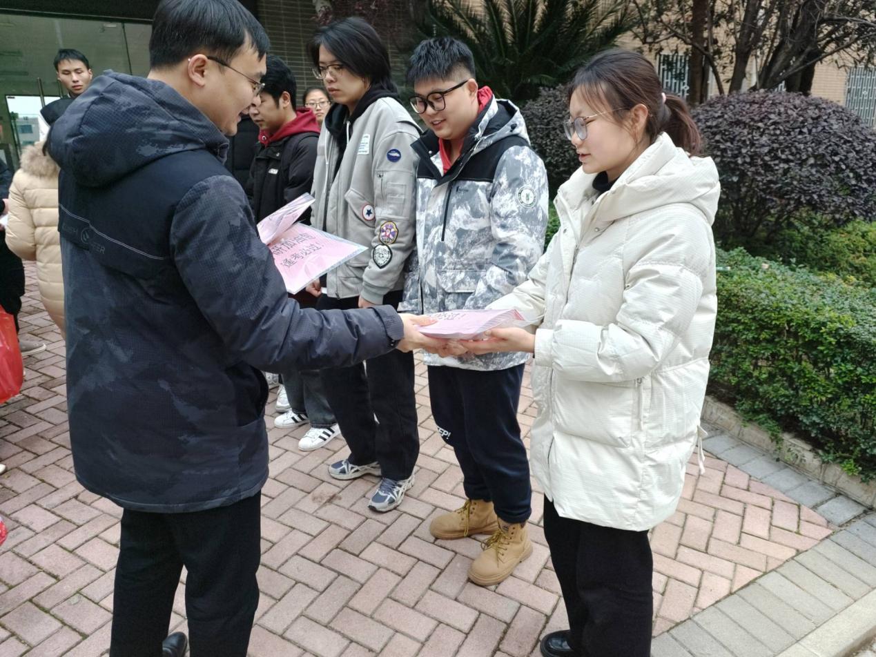 12月18日,学院又为考研学子准备了“暖心加油包”,包含暖宝贴、文具等物品,给同学们加油鼓劲。学院党委副书记刘畅、学院副院长兼教工党支部书记罗旭、学生辅导员等,走访慰问考研学生,到他们宿舍楼下送温暖。